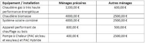 Exemple de primes en fonction de l’énergie choisie et de votre plafond de ressources.